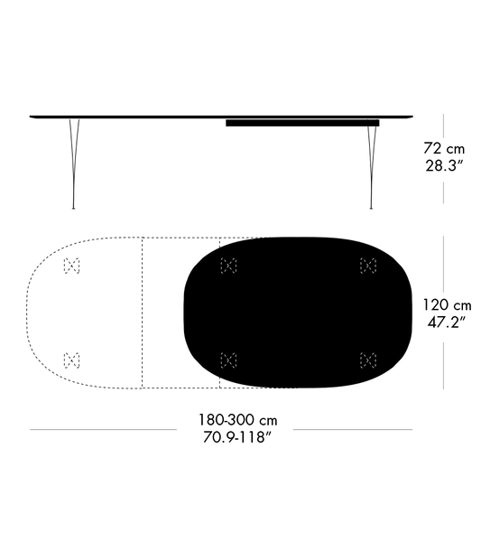 SUPERELLIPSE™ - B619、伸長式ダイニングテーブル、180-300 x 120 cm(テーブル高さ 72 cm)